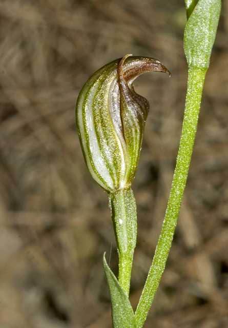 Our property is home to over 100 plants of the critically endangered pot-bellied greenhood orchid (Pterostylis ventricosa), found only in a few places in New South Wales. These delicate wild orchids bloom each year with striking green and red-brown hooded flowers, and we feel incredibly lucky to care for such a rare species.